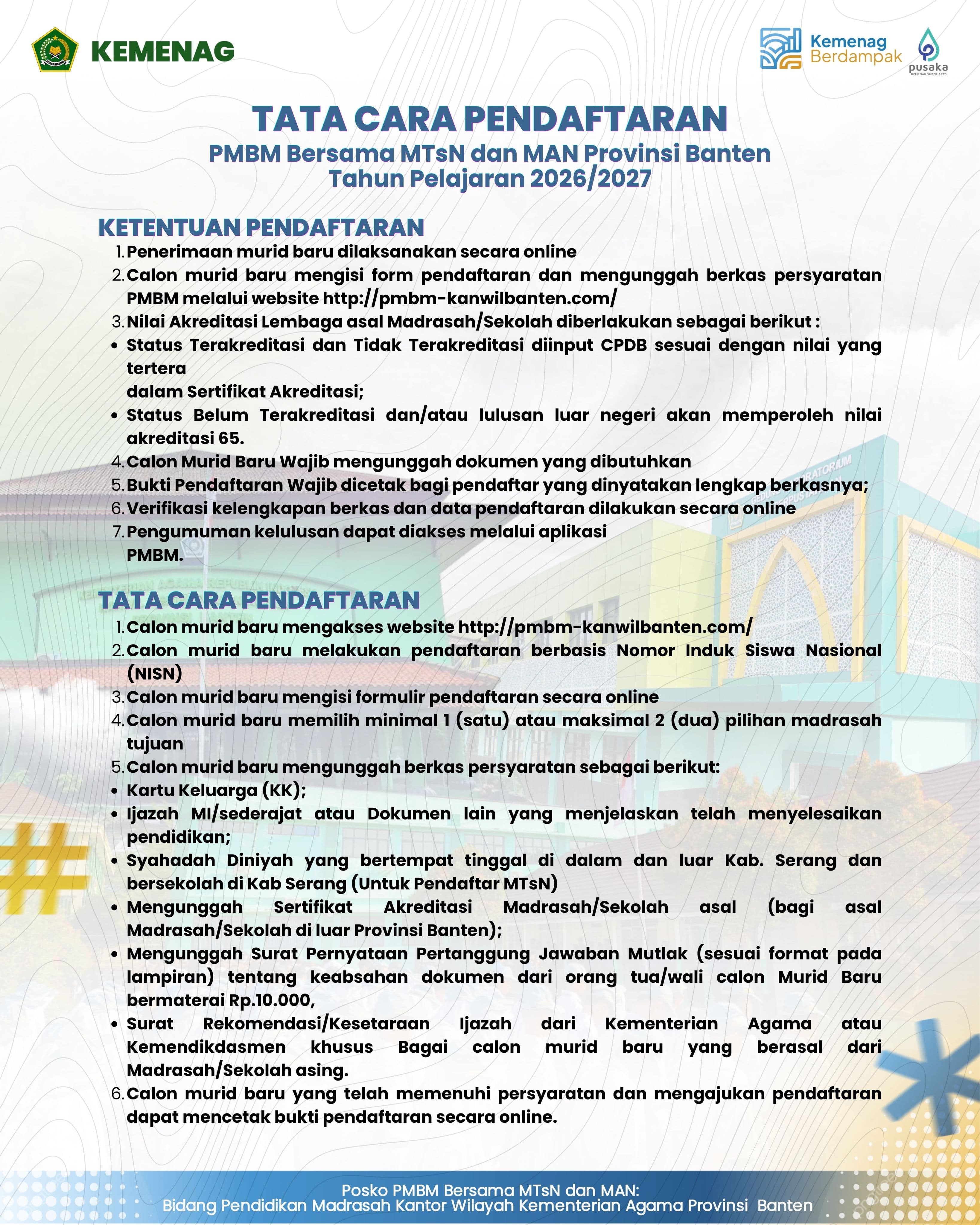 Info PMBM Jalur Reguler Tahun Pelajaran 2026/2027